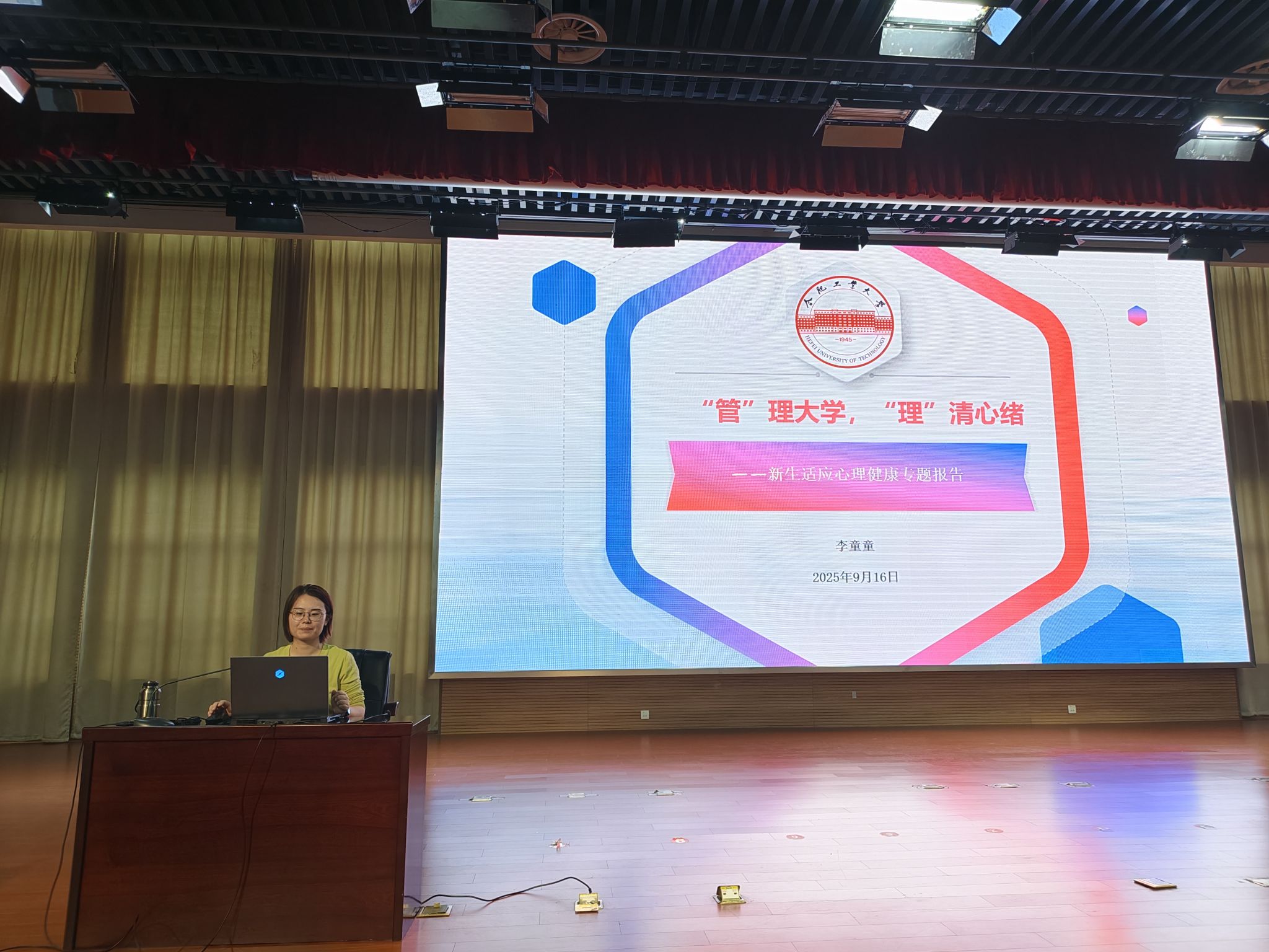 9月27日,“管理大学,理清思绪”心理主题讲座在翡翠湖校区科教楼报告厅举行。中国科学技术大学国家二级心理咨询师李童童主讲,全体25级新生线下参与。讲座以“海龟汤”趣味游戏开篇,随后李老师通过问卷提取关键词,梳理出“早八”“想家”等新生常见困扰,结合“一条狗的实验”和“一盆植物的实验”,阐释“获得控制感可减少焦虑”的观点。她还纠正“压力即负面”的认知,指出适度压力能提升表现,并分享“觉察表达、平和接纳、有效调整”三种情绪管理方法,强调“无需消除负面情绪,要在接纳中与之共处”,为学生筑牢心理认知基础。