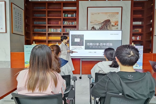 首先,刘琨同学向大家分享了书籍《百年孤独》。本书介绍了布恩迪亚家族七代人的兴衰,在这个家族中,夫妻之间、父子之间、母女之间、兄弟姐妹之间,没有感情沟通,缺乏信任和了解。这种孤独不仅弥漫在布恩迪亚家族和马孔多镇,而且渗入了狭隘思想,成为阻碍民族向上、国家进步的一大包袱。接着,卿雪瑞同学介绍了书籍《绿山墙的安妮》。本书主要讲述了纯真善良、热爱生活的孤儿小安妮被绿山墙的马修和马瑞拉兄妹领养,以其善良和直率,不但得到领养人的喜爱,也赢得老师和同学的关心和友谊的故事,展示了人性真、善、美。最后,同学们结合自身情况进行了讨论和交流,表达了自己对孤独、友谊、爱情、成长的看法。