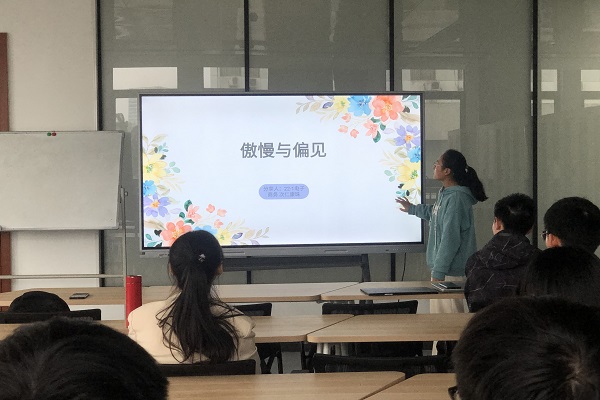 首先,电子商务2022级1班的次仁康珠同学向大家分享和介绍了书籍《傲慢与偏见》,该书主要通过班纳特五个女儿对待终身大事的不同处理方式,表现出当时乡镇中资产阶级家庭出身的少女对婚姻爱情问题的不同态度。接着,在场的同学分享了自己对于该书内容和人物的理解和体会,并通过书写的方式写下了自己的感悟,现场同学们展开交流与讨论。最后,同学们积极主动地分享介绍了自己喜爱的心理书籍,如《蛤蟆先生去看心理医生》、《生死疲劳》、《积极心理学》、《夏洛的网》等。