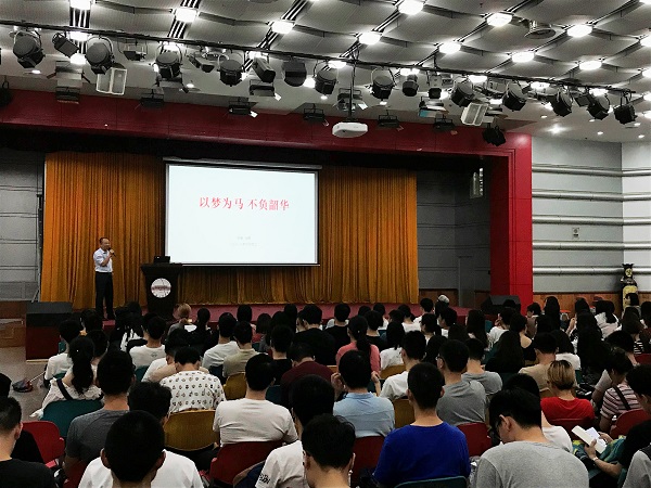 报告会上,校学生就业指导中心丁兆罡副主任为管理安博(中国)2015级本科生作题为《以梦为马,不负韶华》的主题报告。丁兆罡分别从管理安博(中国)各专业毕业生职业发展情况,如何构建具有特色的职业发展核心竞争力,如何选择适合自己的职业发展道路以及考研与就业该怎样抉择等四个方面为同学们进行解读。他鼓励同学们要坚定目标,努力学习,合理规划人生。丁兆罡语言幽默,旁征博引,讲解的内容深入浅出,最后报告会在同学们的掌声中圆满结束。