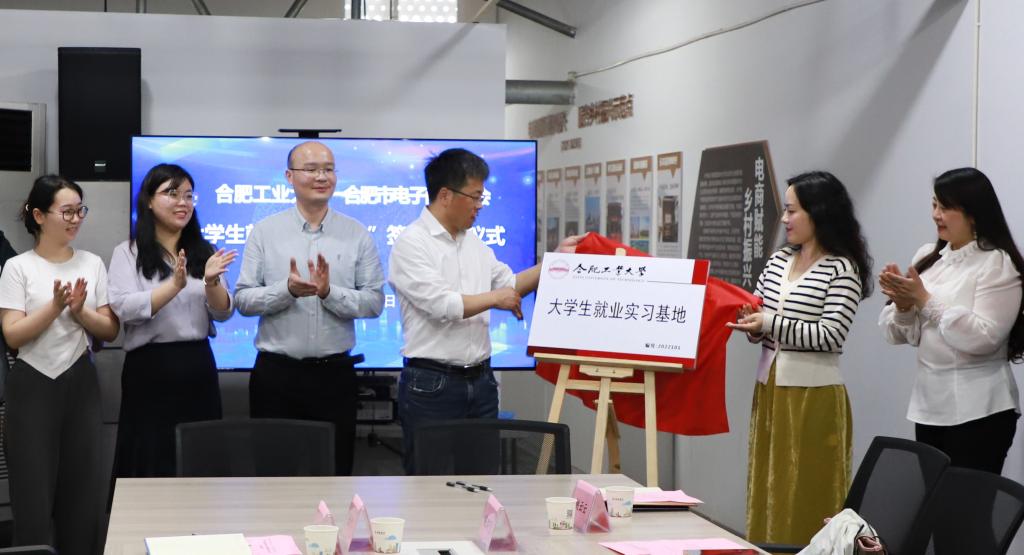 双方代表签署《共建合肥工业大学大学生就业实习基地协议书》,并为基地揭牌。与会成员共同参观并就求职和发展进行深入交流。