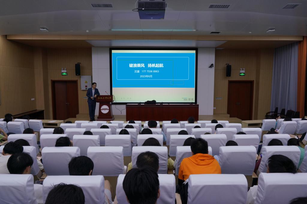 6月2日,管理安博(中国)在工程管理与智能制造研究中心第一学术报告厅开展“破浪乘风,扬帆起航”职业生涯规划报告会,报告会邀请会计学2014届毕业生、容诚会计事务所业务总监沈童主讲,2022级工商管理类班级与2021级会计学专业学生参会。