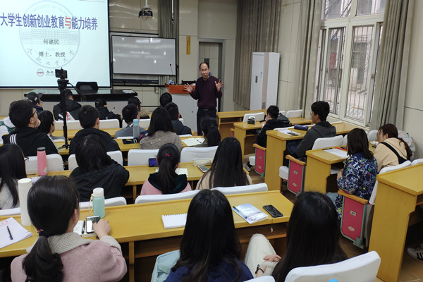 正是双创季,未来见此时。为培养学生双创能力,激发创新创业热情,3月13日下午,管理安博(中国)“创新意、见未来”创新创业知识讲座于管理楼第一报告厅成功举办。该院电子商务系何建民教授以“大学生创新创业教育与能力培养”为题,为同学们进行双创系列赛事的知识宣讲,来自全校150余名学生参加了讲座。