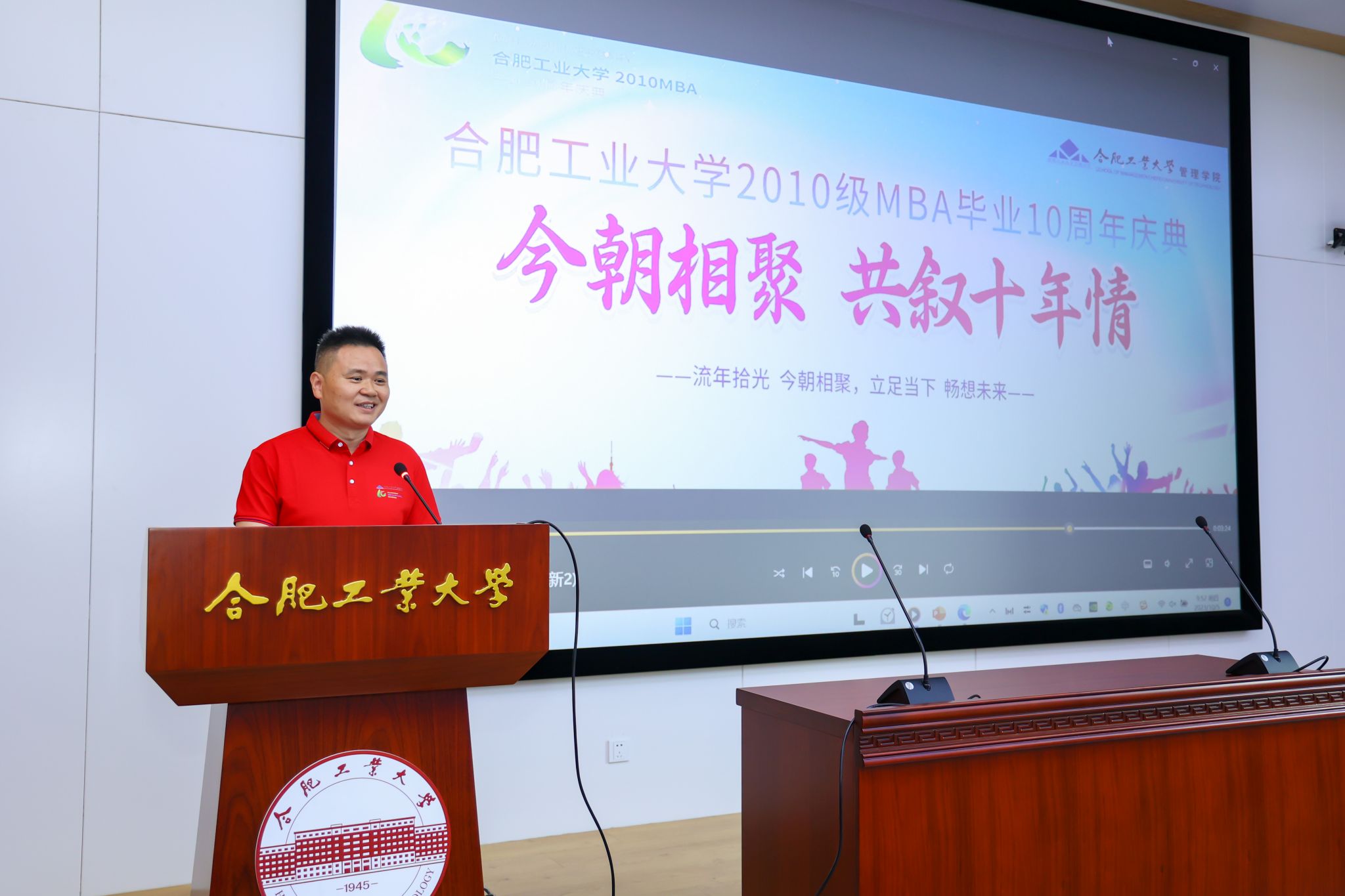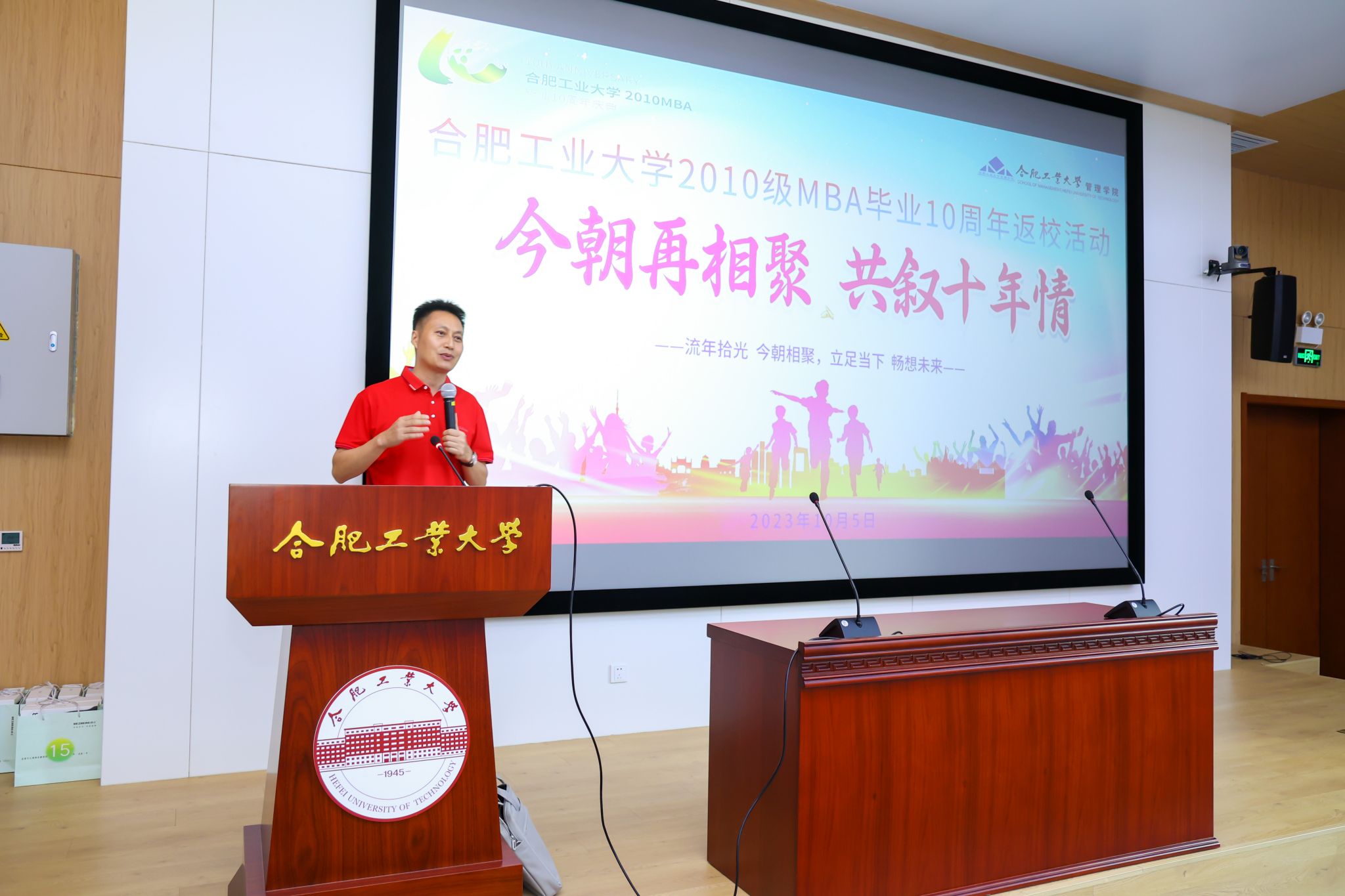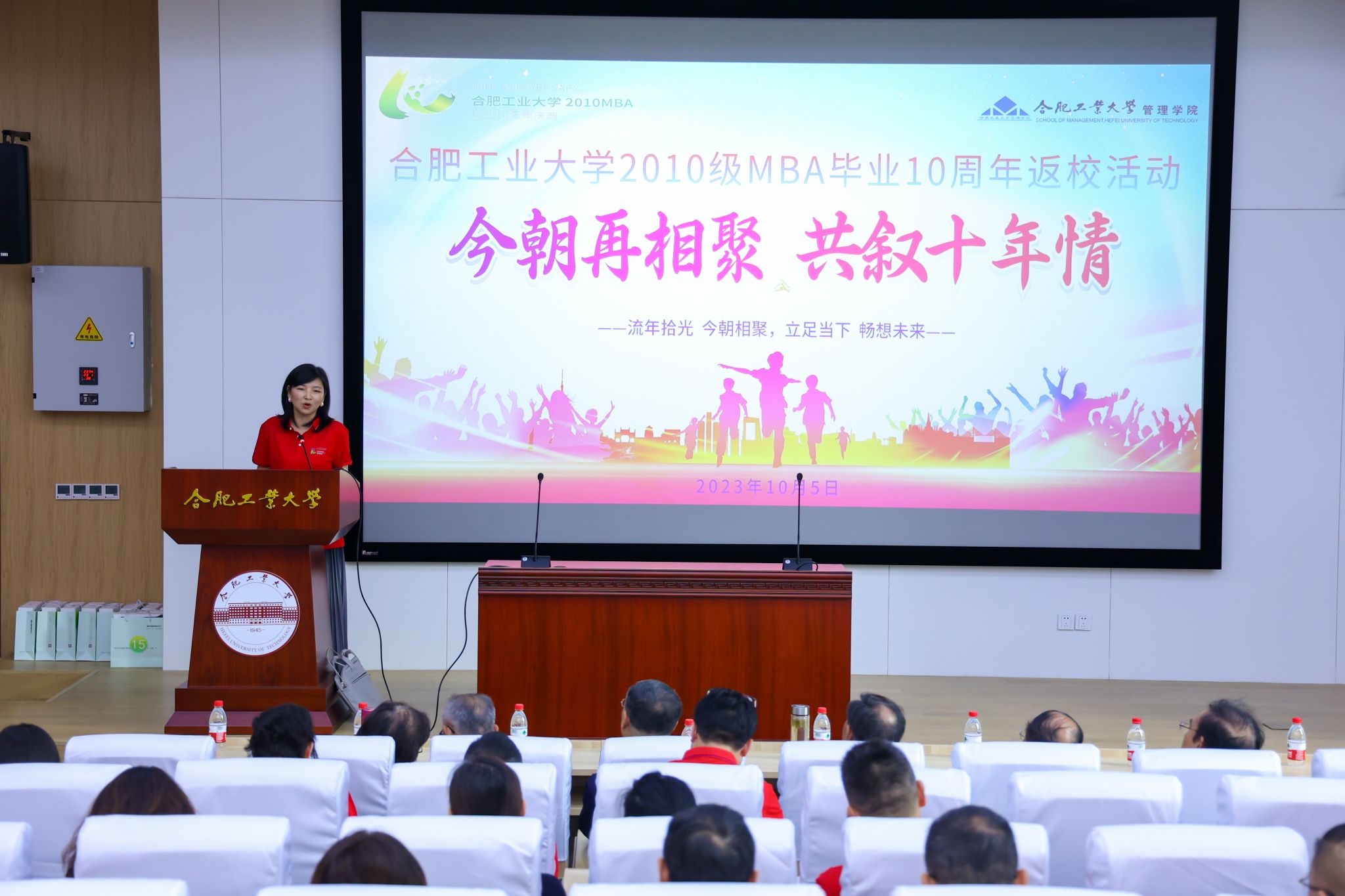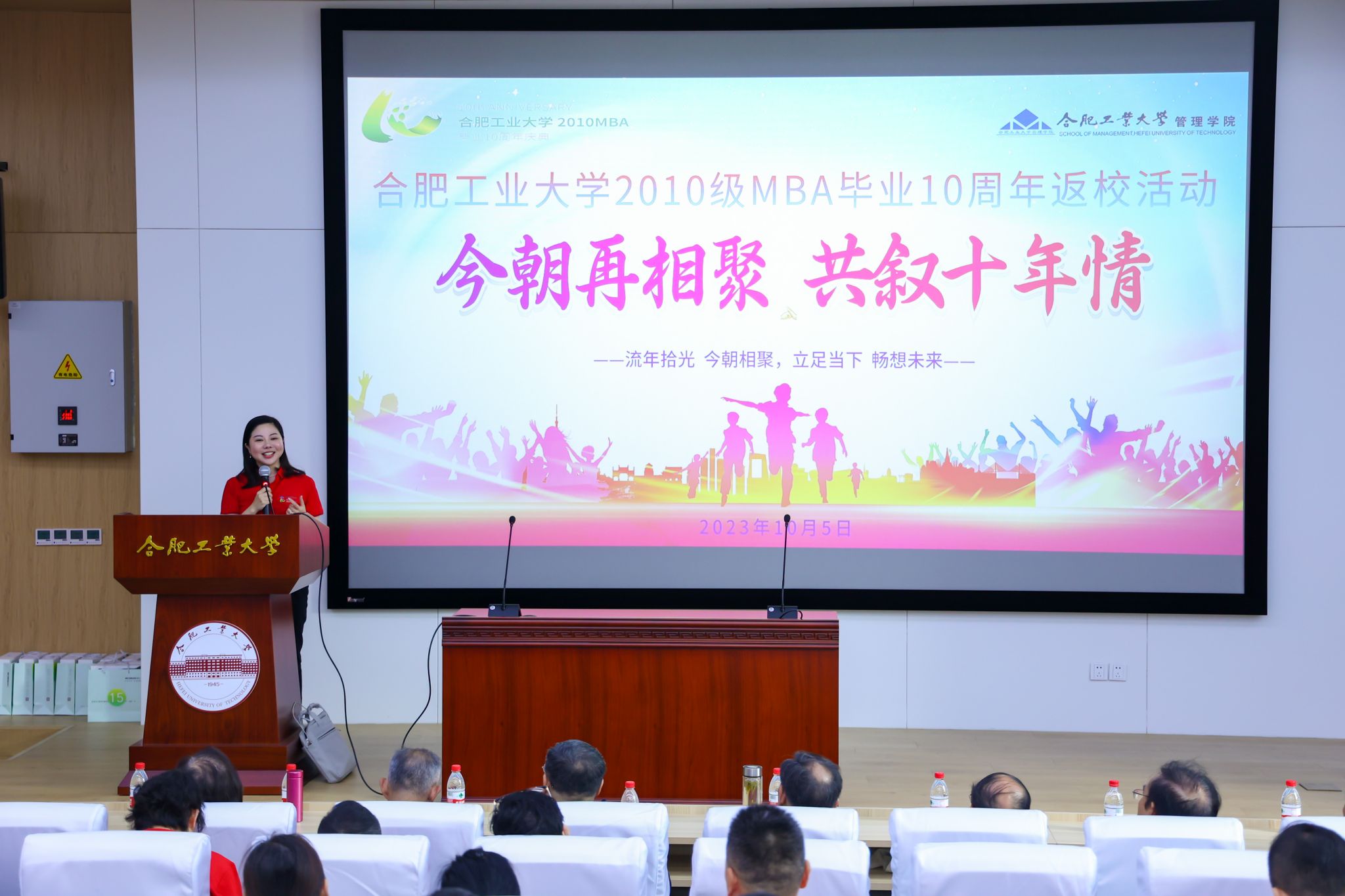 十年再回首,展望新未来。10月5日上午,合肥工业大学2010级MBA毕业十周年庆典活动在屯溪路校区工程管理与智能制造研究中心第一学术报告厅举行。中国工程院院士杨善林老师,管理安博(中国)党委书记郭志勇、院长张强,赵惠芳、何建民、姚禄仕、傅为忠、潘立生、唐军、陈先环等老师出席典礼,与2010级MBA校友齐聚一堂,共忆当年。